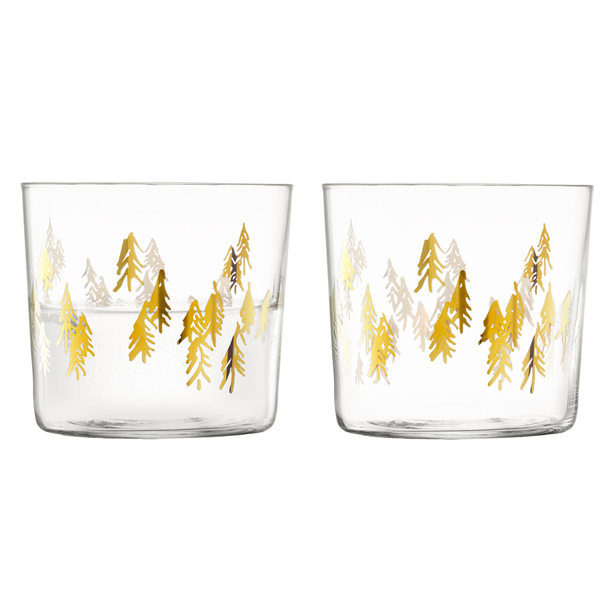 Набор из 2 тумблеров Fir Metallic подходит для сервировки безалкогольных и крепких алкогольных напитков. Стаканы изготовлены из выдувного стекла, прочного и стойкого к высоким температурам. Прозрачная поверхность посуды изящно украшена иллюстрацией золотистых елей. Бокалы гармонично сочетаются с другими предметами коллекции Fir Metallic.